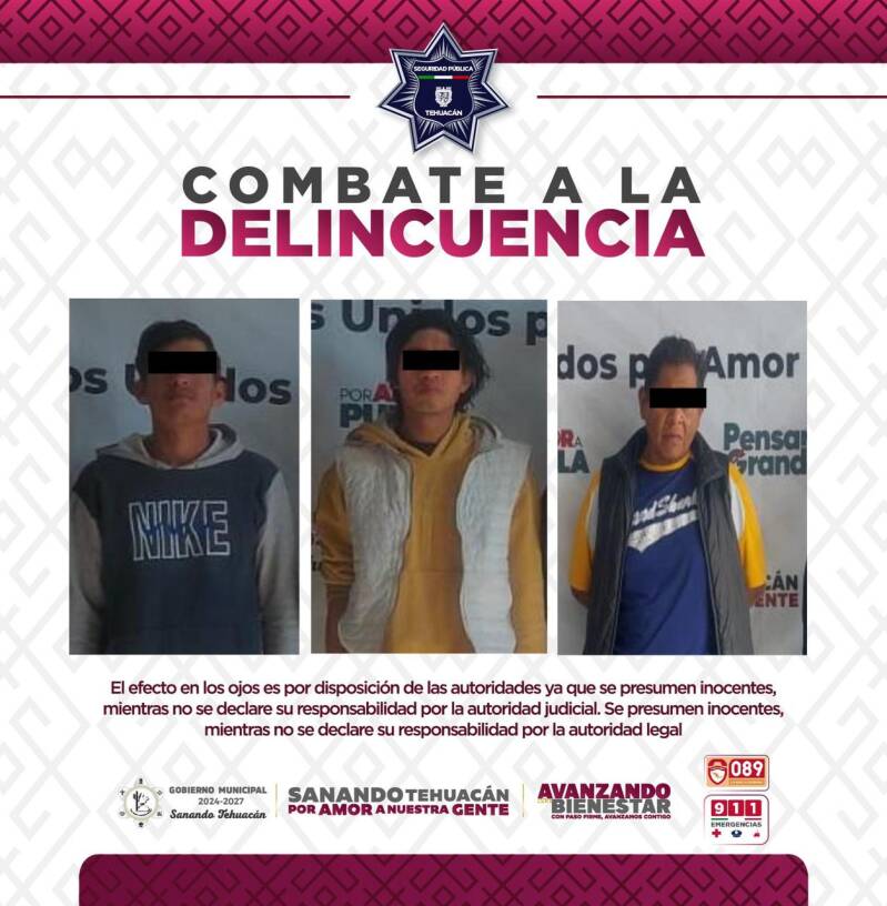 Una vez cumplidas las sanciones administrativas, los detenidos, identificados como José Francisco N., Marcos Iván N. y Luis Marcial N., fueron asegurados por Agentes Estatales de Investigación del Estado de Puebla, quienes dieron cumplimiento a las órdenes judiciales correspondientes.