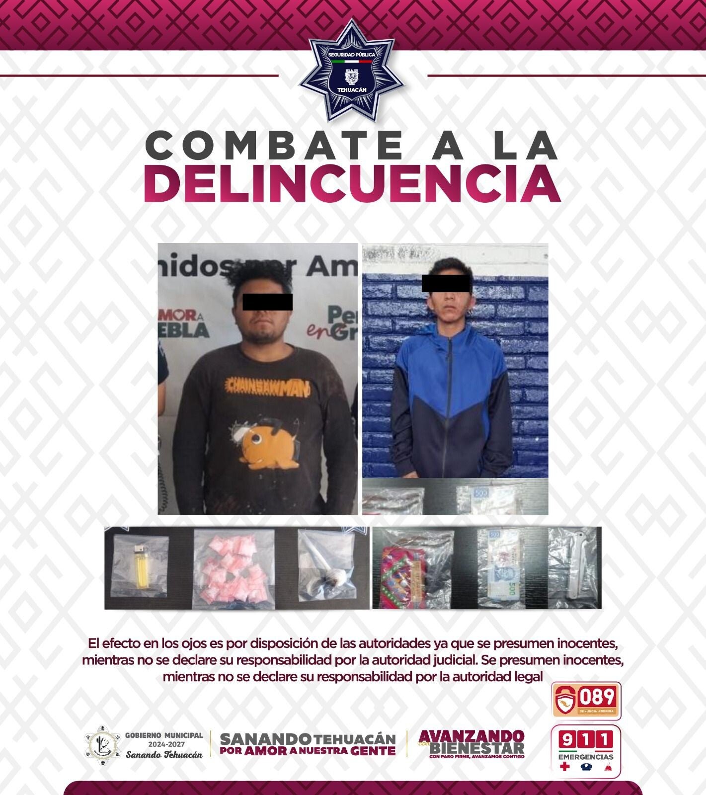 Policía Municipal de Tehuacán detiene a dos operadores de “Los Chimecos” por narcomenudeo y robo
