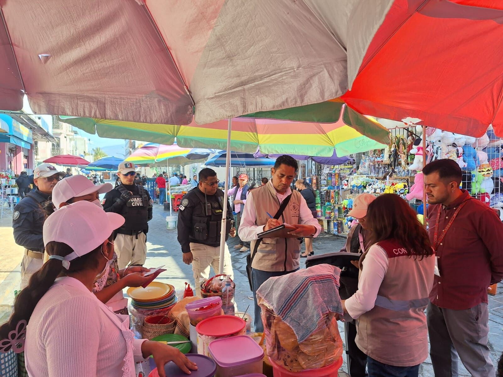 De igual forma, se realizaron inspecciones sanitarias en el mercado 16 de Marzo, en coordinación con la Dirección de Fomento Comercial, Guardia Civil Turística, Protección Civil y Bomberos, con el objetivo de verificar el cumplimiento de las normas de higiene en la venta de alimentos en la vía pública.