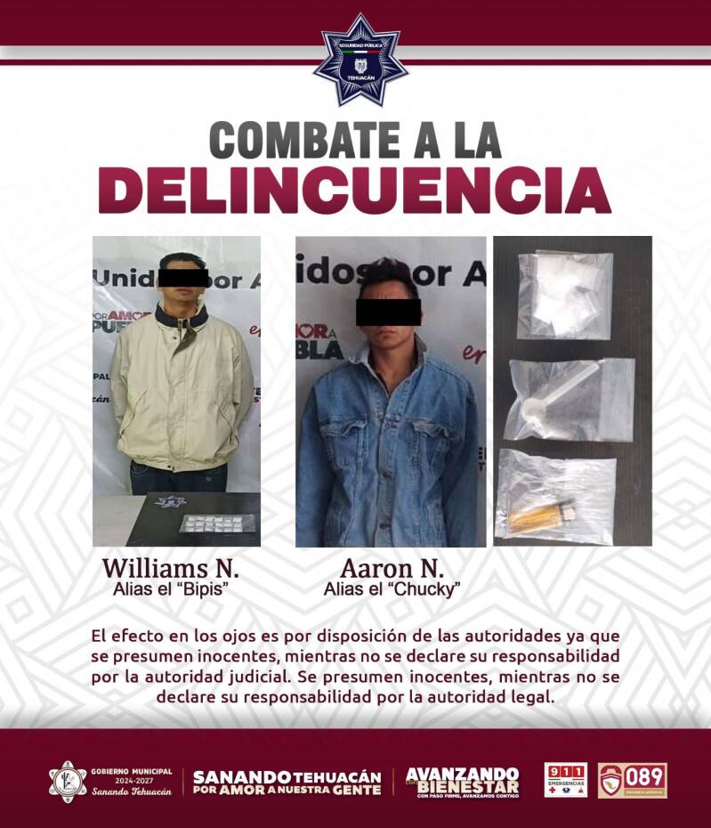 Caen “El Bipis” y “El Chucky” con cristal en operativos de la Policía Municipal de Tehuacán